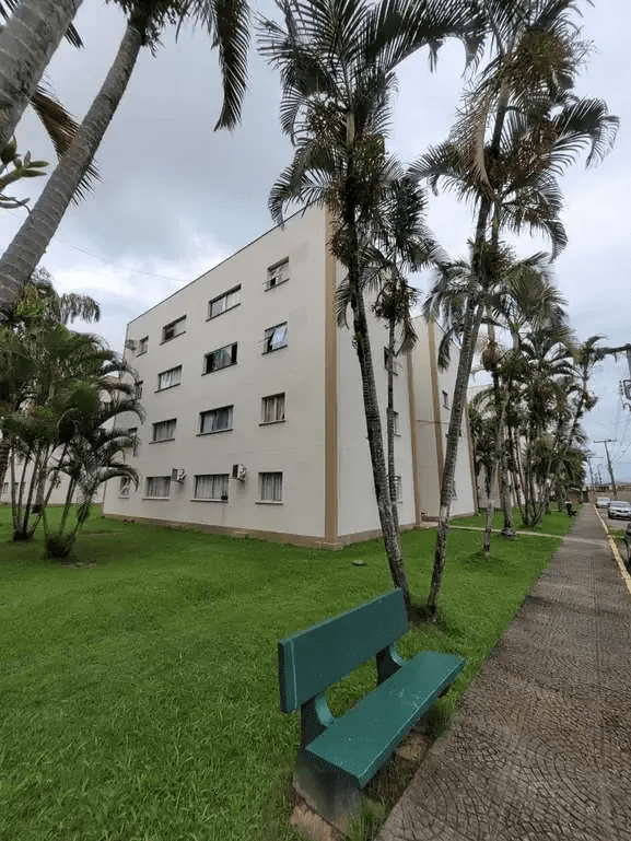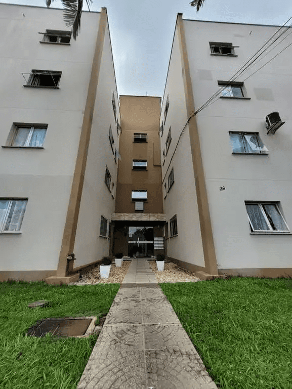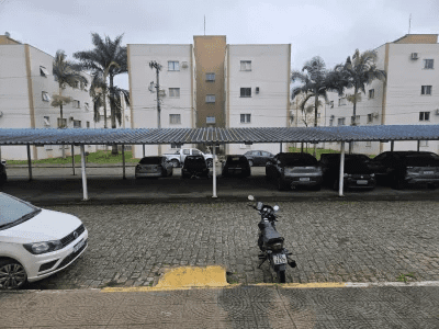 Apartamento com dois dormitórios, com uma vaga coberta, sala, cozinha e lavanderia.